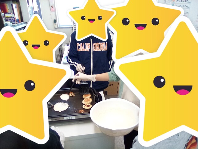 3月25日は「おやつクッキング」でホットケーキ作りをしています。