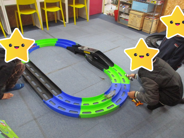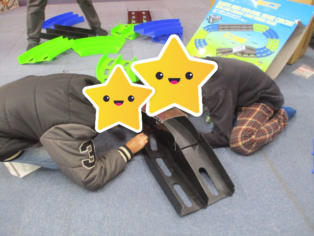 お友達と協力して仲良く組み立て、あっという間にコース完成です。