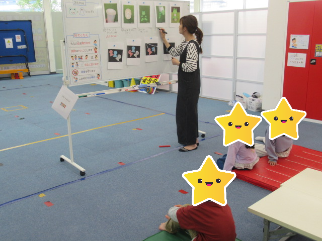その後は、ピクトグラムカードのイラストに合わせて、同じ動きをします。