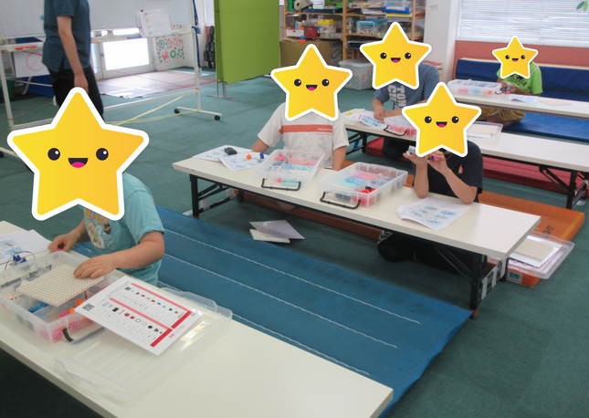 午前中はすてむぼっくすで鎌田教室と保原教室に分かれて活動を行っています。鎌田教室ではモーターカーを作りました。