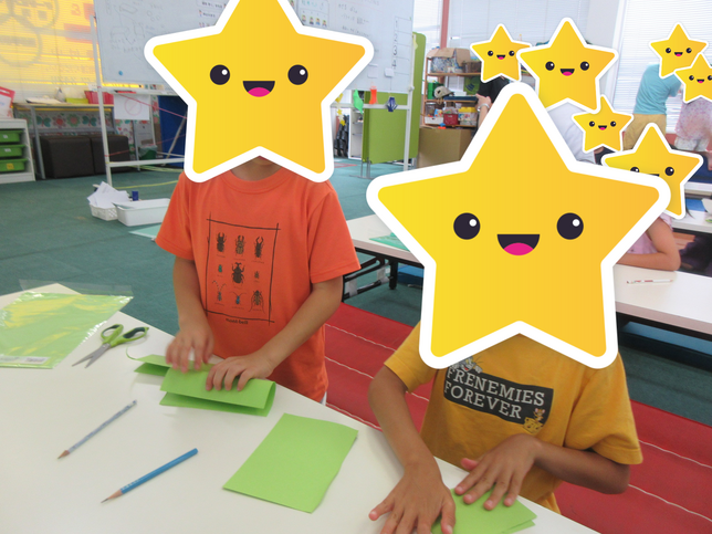 みんな真剣そのものです!出来上がったものは笹の葉に飾ります。