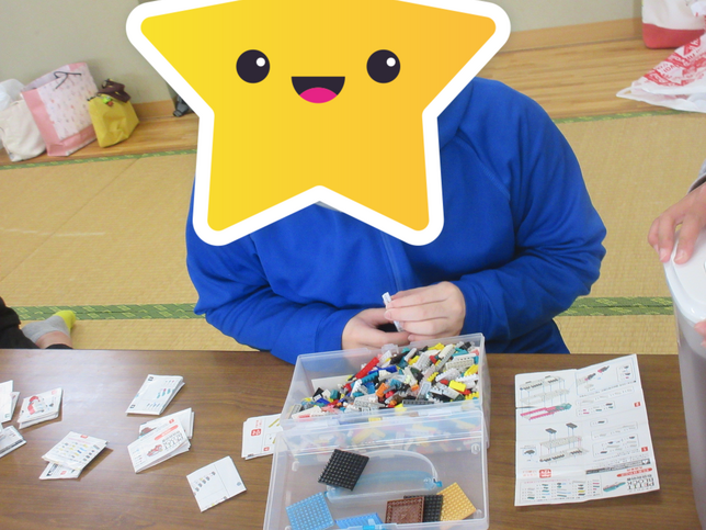 みんながボールで遊んでいる中、プチブロックに夢中になっているお友達も…