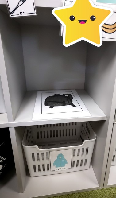 玄関の靴箱、所持始末の手順書、スケジュール、今日の友達、先生、学習の机、約束やルール等々・・・。たくさんの合理的配慮が教室中に見られます。