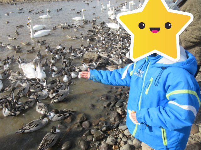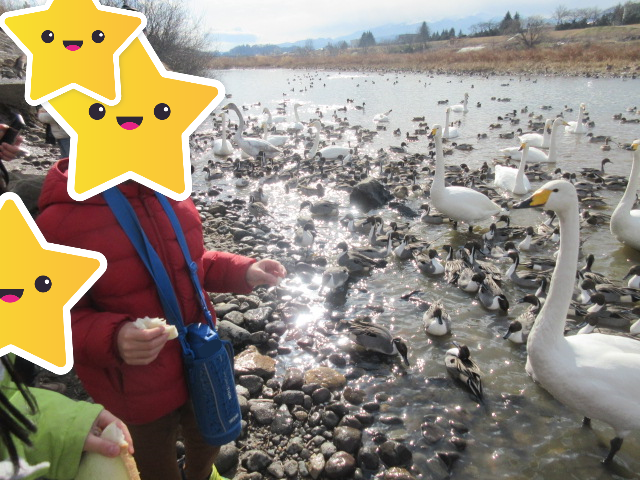 あぶくま親水公園に行き、白鳥にエサやり体験をしました(^^)/