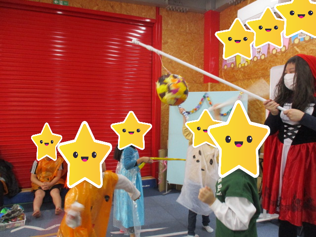 ミライム 合同ハロウィン パーティー/福島八木田教室 続いて、ミライム恒例の『ピニャータ割り』です♪