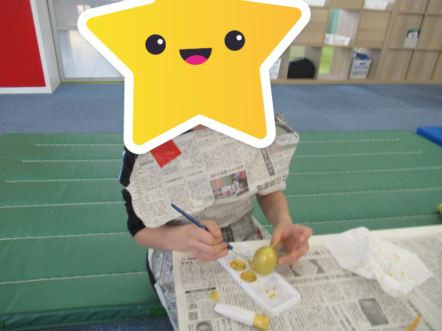 沢山の色を使って、芸術的な卵が完成した子や「この色とこの色を混ぜたらどうなる?」と言いながら絵具を混ぜて色作りをしながらこだわりの作品を作り上げた子もいました!