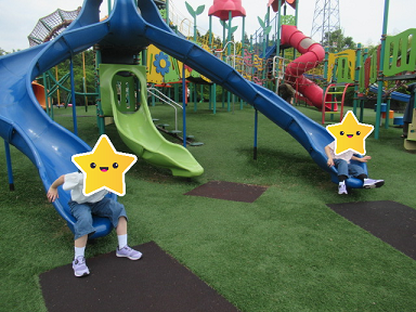 大きい遊具に目をキラキラ輝かせる子ども達。”初めて”が苦手なお友達も、スタッフが本人のペースに合わせながら同行しています。