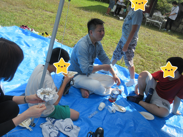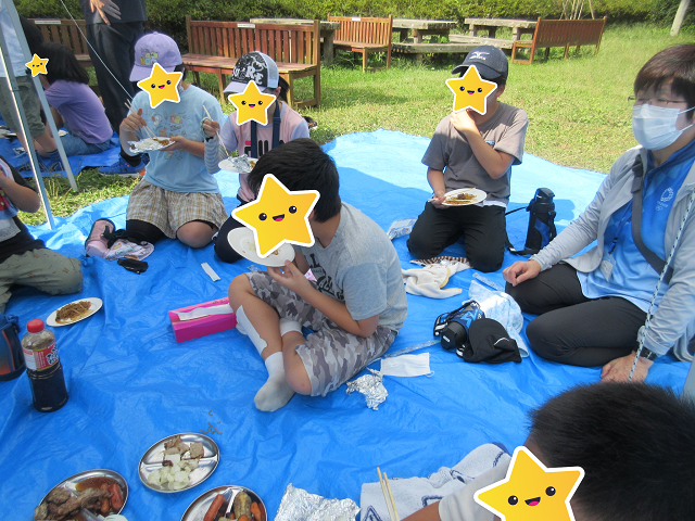 今回は自分達の席まで、大森教室のお兄さん、お姉さん達が次々と出来上がったウインナーやお肉や焼きそばを運んでくれました。炊き立てのご飯も食べれて幸せいっぱいです。