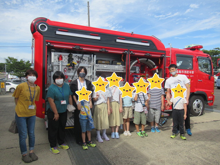 自由時間は好きな遊びを楽しみ、学習をして午後から消防署に向かいました。