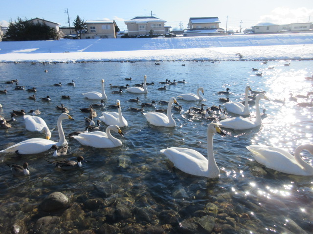 あぶくま親水公園には、たっくさんの白鳥がいました!!それも目の前に!