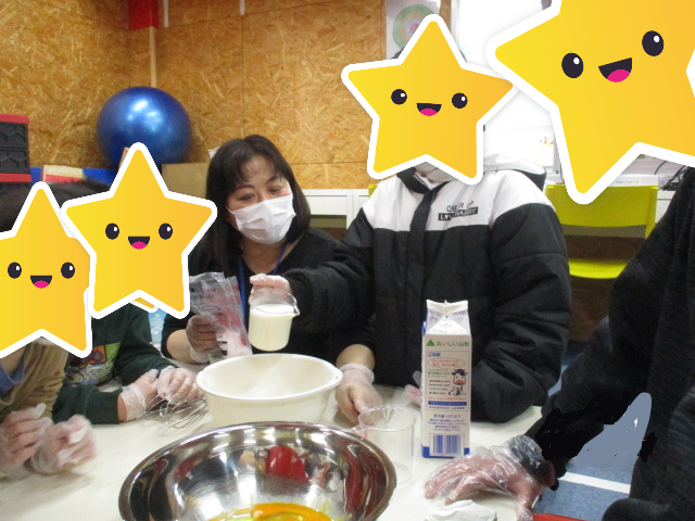 教室に戻ってきてからは、お楽しみのホットケーキ作りです☆