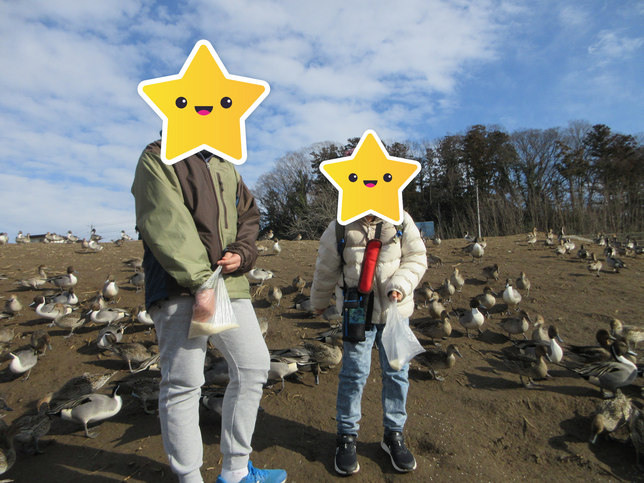 「わー!いっぱいいるー!」「先生パン持ってるとカモが近づいてくるよ!」
