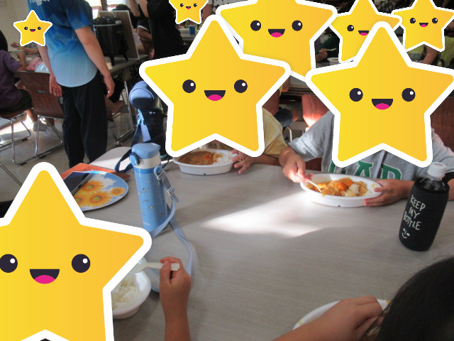 保原教室は福島西中央教室のお友達と一緒にカレーを食べることからスタートです♪大森教室の子ども達が暑い中、朝早くから準備をして作ってくれたカレーをいただきました!