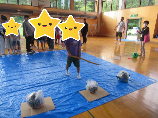 その後は、体育館でのスイカ割りに参加しました。