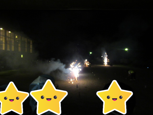 あいにくの天気でしたが、街灯がない場所で行う花火はとてもキレイでしたね!
