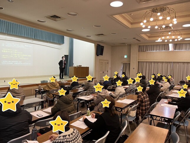 子ども達を取り巻く、環境・療育の質・療育を受ける時期の差が与える影響についてお話をしていただき、困っているのは子ども達本人であること・叱るより褒めることの大切さを分かりやすく写真や図を用いて説明をしていただきました。