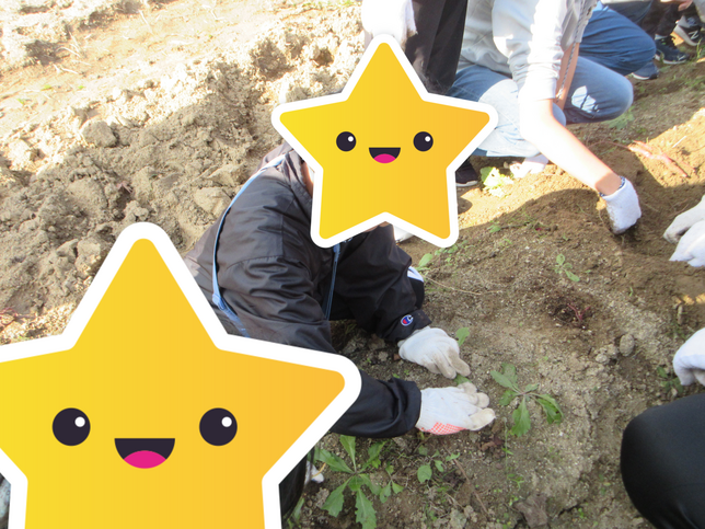 軍手をしたり、スコップで根っこを掘ったりして、一生懸命きれいにしました。