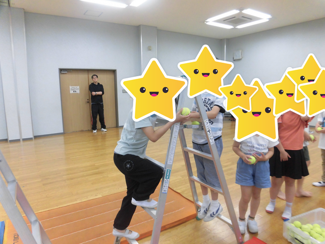 子どもたちなりに考えて、じゃんけん勝負を沢山したり、テニスボール運びを頑張ったりしていました。