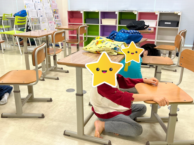 防災訓練 &公園へ行こう/福島八木田教室 まずは、地震が起きた際の行動!