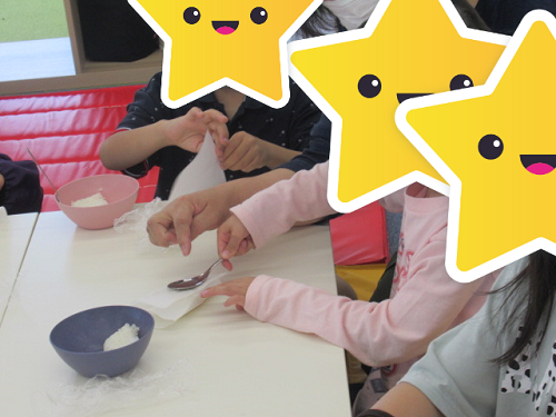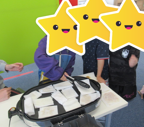子ども達はびっくり!「お米でおせんべい作れるの!?」と、とても良いリアクションをしてくれました。新たな発見をしましたね(^^)/