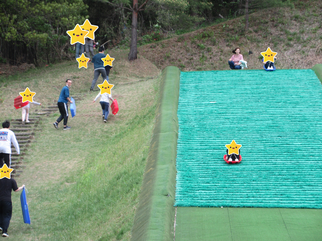 保原中央教室も最終日なので元気に赤坂公園でソリすべり体験をしてきましたよ‼私自身初めて行きましたが自然豊かな場所にありスキー場ぐらいの傾斜でびっくりしました。