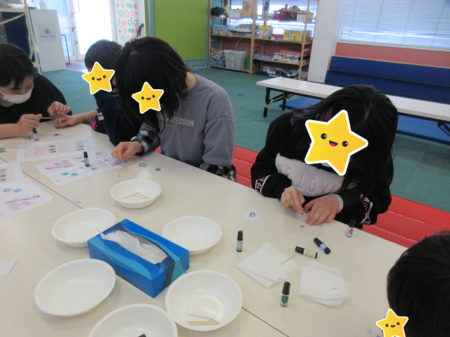 プラ板は普段の自由時間を使って作っているので、やり方はばっちりの子どもたち!