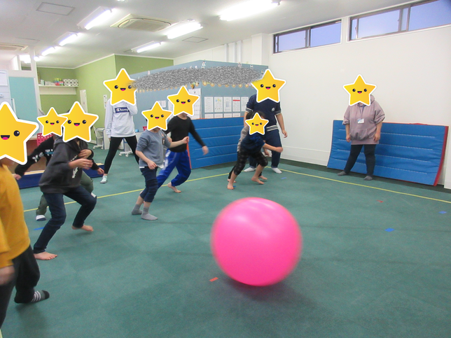 「今日の運動は、転がしドッチです」と発表されると、「やった~!」という