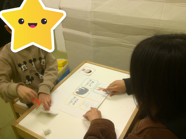 勿論ヘルプサインを出すことが難しいお子さんもいらっしゃいます。その際は、スタッフがお子さんの様子を見ながら「難しいです、だね」「手伝ってください、だね」と代弁を行っています。