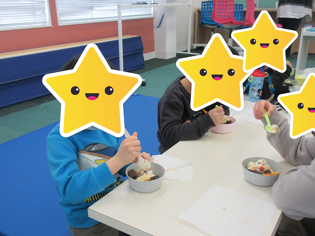 豪華なパフェが出来上がり、早く食べたくてうずうずしている子ども達。(笑)