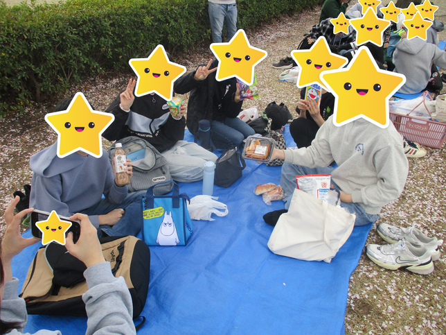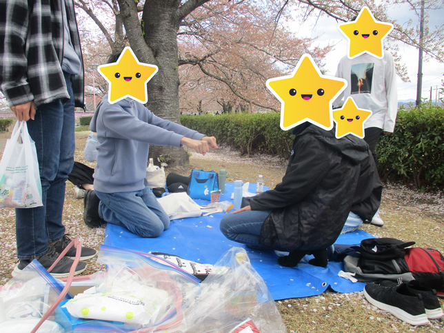 桜が舞い散る素敵な場所を確保し、みんなで昼食の準備をします!