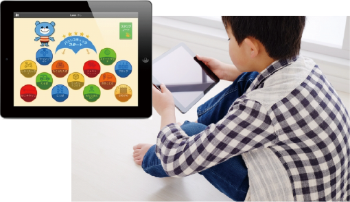 タブレットにタッチするだけで、遊びながら子どもの発達指数を分析できるシステムと連動!お子さんの成長が目に見えて把握できます。