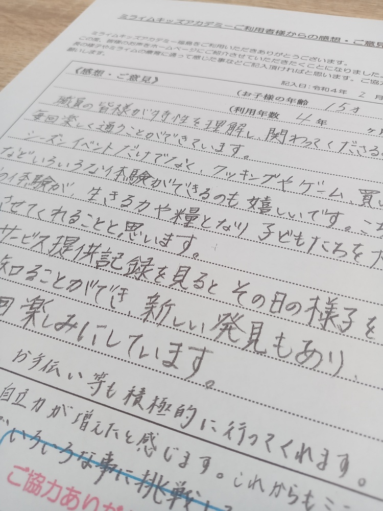 | 13:00〜 | 午後の活動(運動・学習・製作活動等) |