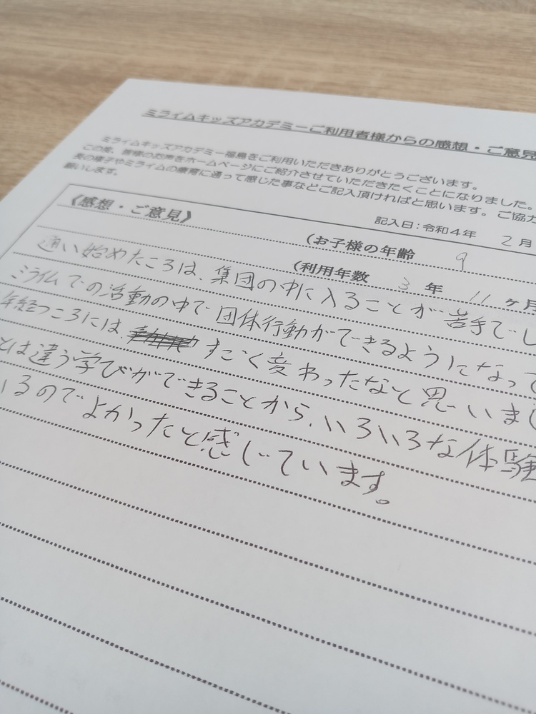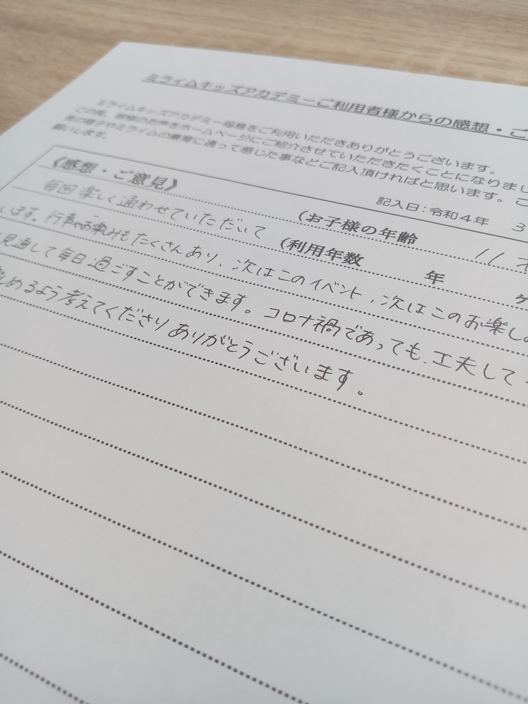 | 10:30〜 | おやつ、午前の活動(運動・学習・製作活動等) |