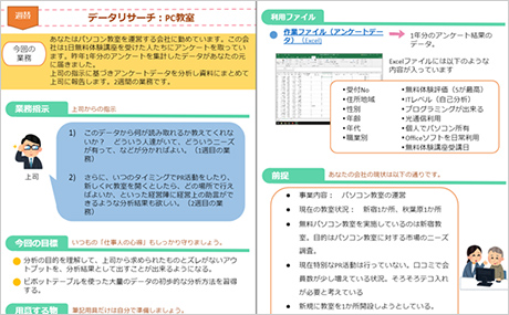 各教科の学習用教材、ITスキルなどの練習用教材を用意。また、自己理解や自己分析を深めるワークシートやビデオ資料が数十種類あり、個々の状況に応じて取り組むことが可能です。