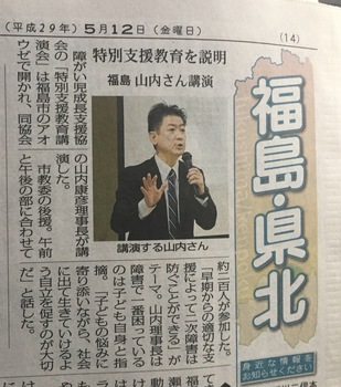 5月4日(木)にアオウゼで開催した特別支援教育講演会の様子を、 5月12日に福島民報様の朝刊に掲載して頂きました。